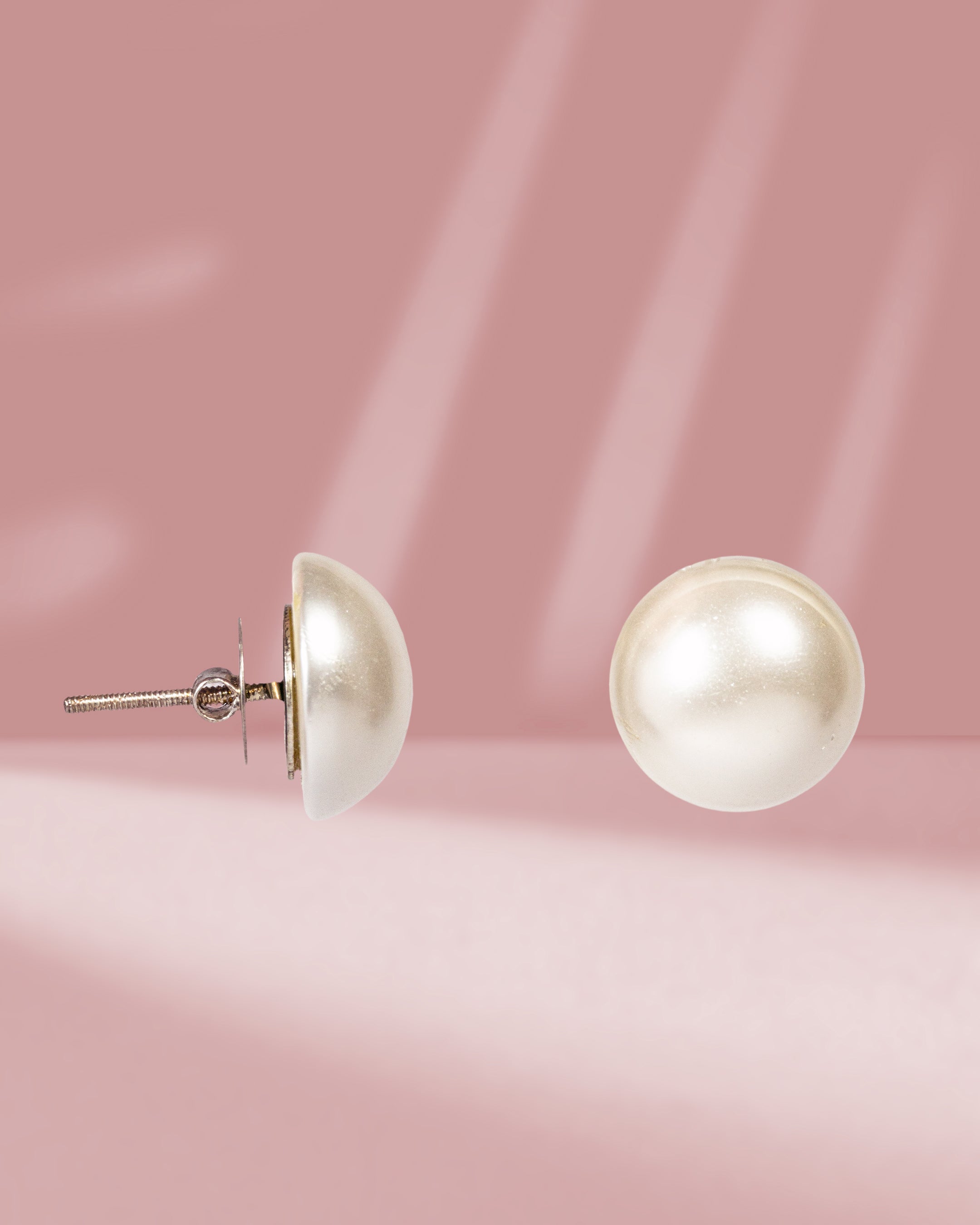 Achieve the ultimate sophisticated look with these Oversized Button Pearl Stud Earrings. Crafted on a 925 Sterling Silver base, each earring features a large, lustrous White Shell Pearl in a classic hemispherical (Mabe/Button) shape.
